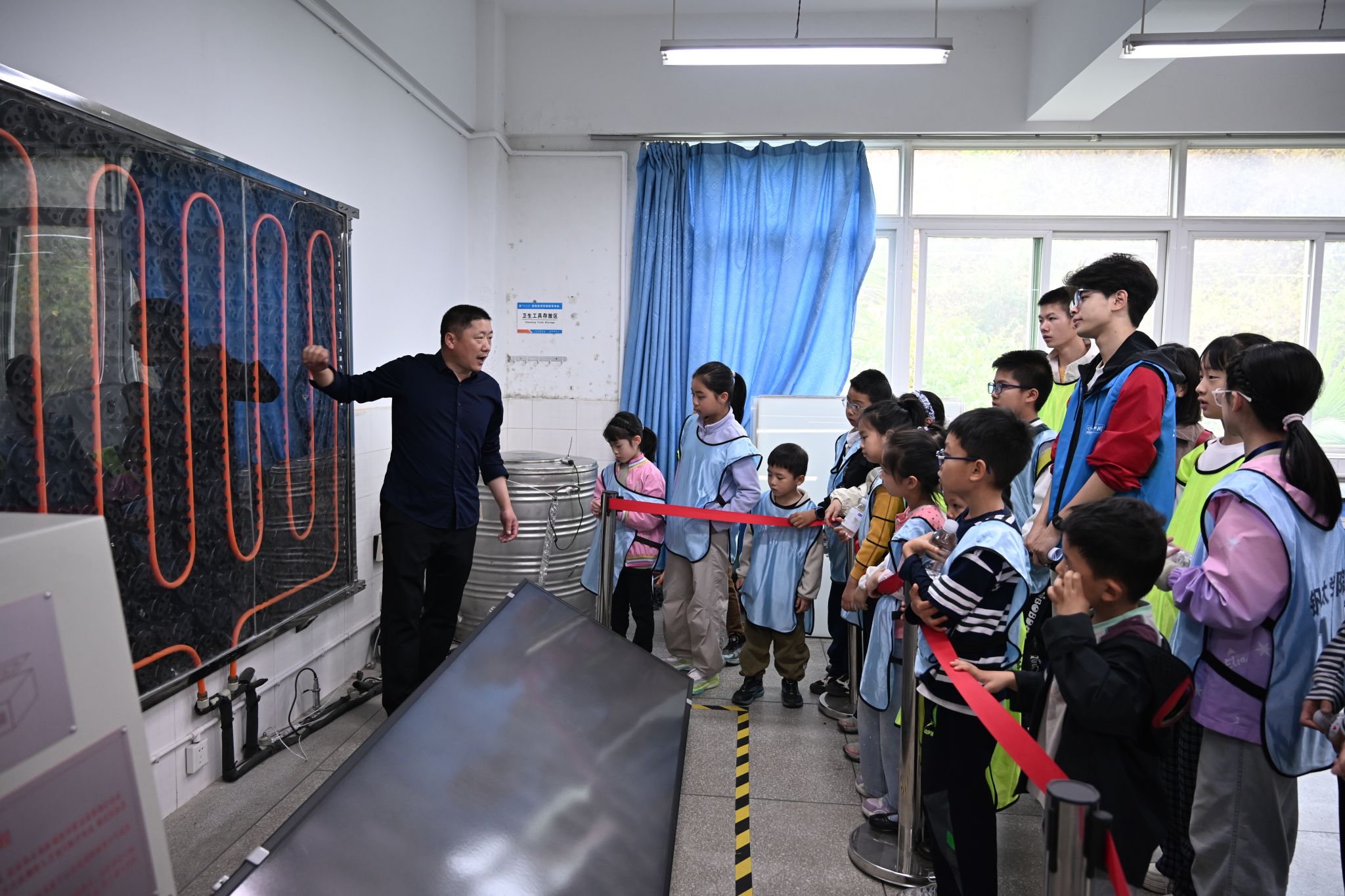 在另一组活动中,新能源专业教师带领大家来到太阳能发电装置前,讲解光能如何转化为电能,孩子们好奇地提问:“家里的电灯也能用太阳点亮吗?”在互动中,清洁能源理念悄然入心。