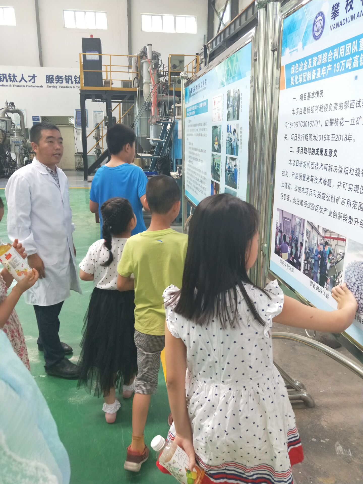 来宾们在钒钛资源综合利用四川省重点实验室中试车间参观了科研成果及设备后,兴致勃勃地表示以后要当科学家。