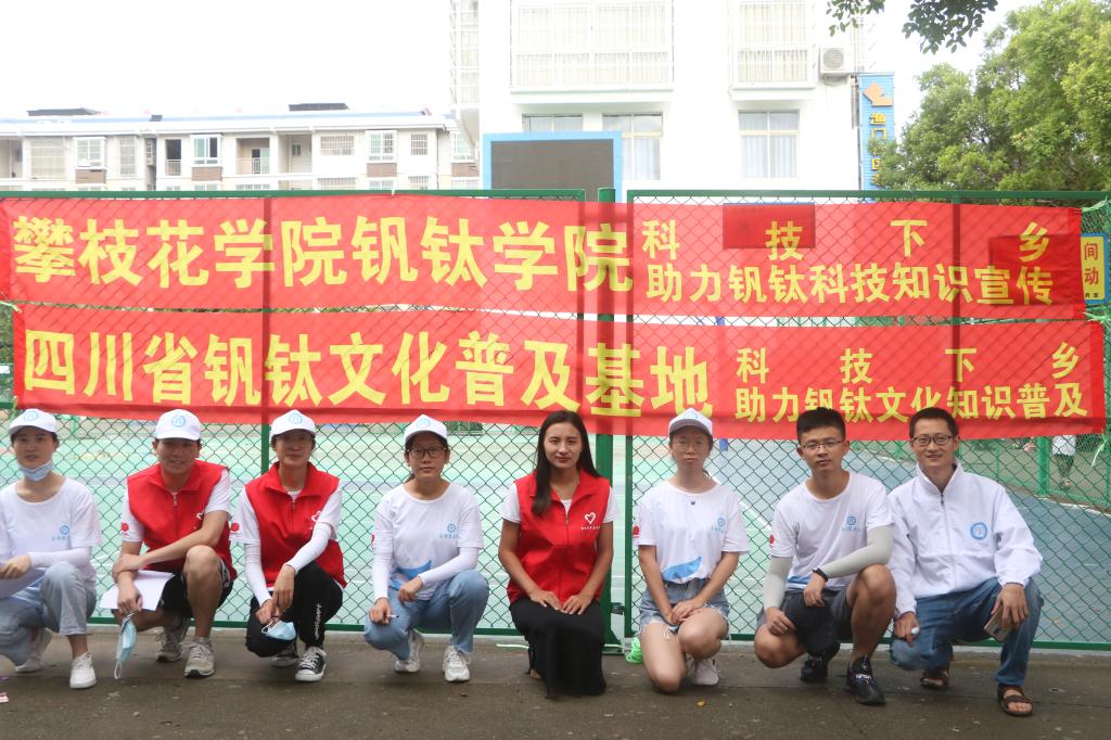 此次科普活动由四川省钒钛文化普及基地和攀枝花学院钒钛学院组织,由侯静老师带队,组织钒钛学院材料科学与工程、材料成型及控制工程、冶金工程及新能源科学与工程专业9余名暑期社会实践本科学生联合盐边县青年志愿者共同开展钒钛文化知识及钒钛科技知识宣传活动。