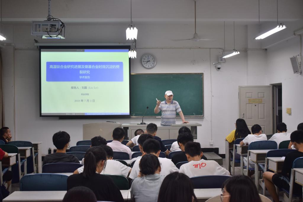 报告会上,刘博士围绕高温钛合金研究进展和镍基合金时效沉淀的劈裂研究两个方面展开学术报告。首先,以高温钛合金研究历史为基础,比较全面地介绍了我国近三年来在钛科学与工程领域内的新进展,让同学们了解到了钛合金的研究价值。随后,讲述了钛基合金研究现状,钛基合金存在的问题以及钛基合金发展趋势,结合自己的研究,介绍了钛合金研究的环境及它的应用,表明钛合金在不同环境中作用各不相同。紧接着,由浅入深,详细讲述了镍基合金时效沉淀的劈裂研究过程,并对镍基合金研究作出了期望,相信镍基合金研究将取得进一步突破。此次讲座内容丰富多彩,语言通俗易懂且条理清晰,同学们受益匪浅。最后,学生们积极与刘博士深入交流高温钛合金及镍基合金相关知识。