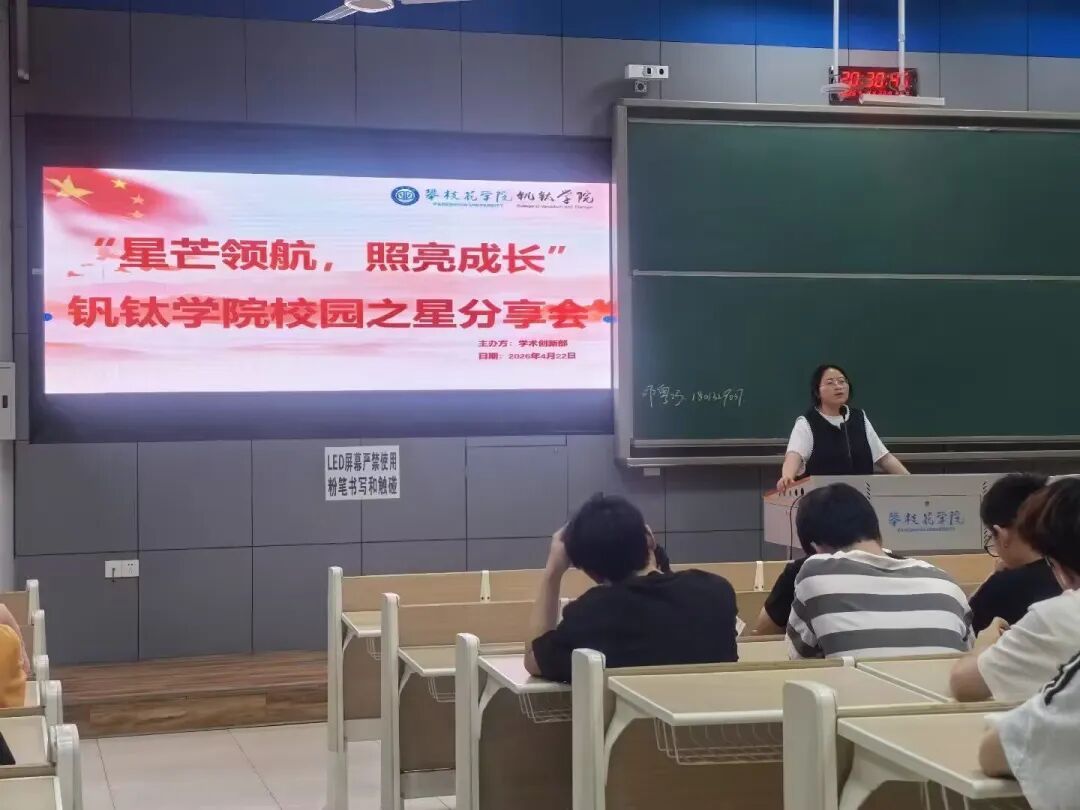 此次收官场分享会的顺利举办,不仅为系列活动画上了圆满句号,更激励着全体钒钛学子以榜样为指引,把学习感悟转化为奋进动力。未来,钒钛学院将继续深耕学风建设,持续开展各类榜样引领活动,助力青年学子在大学时光里笃行不怠、逐梦前行,书写更加出彩的青春篇章。