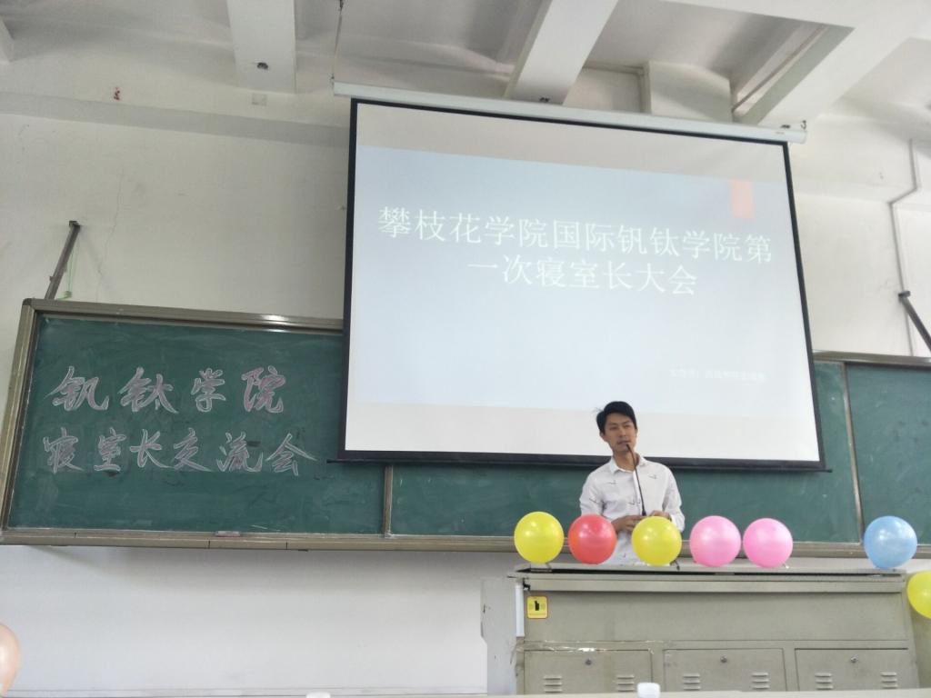 2017年4月16日,钒钛学院开展了第一次寝室长大会 本次大会学生科科长左承阳老师, 17级辅导员李宏老师出席大会。