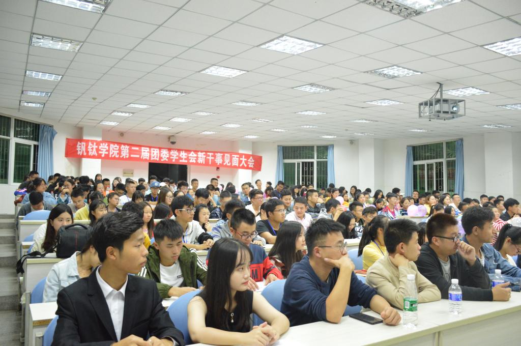 10月13日晚,钒钛学院第二届团委学生会新干事见面大会在C教1-1召开。钒钛学院书记、院长邹敏,副院长赖奇,学生科科长李宏,分团委书记刘甜甜,学生科老师出席本次大会,全体学生会成员参与此次大会。