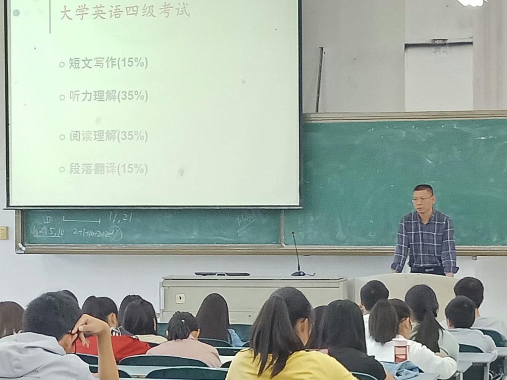 讲座过程中,杨颖教授提出“为什么要上大学”这一问题。他提倡我们崇尚“真善美”这些美好品德,并告诫在座同学身在大学应该提升自己的修养。随后,杨颖教授提出“目标+学习+活动+证书+健康”这一度过大学四年生活的方案,并从多个角度告诉同学们如何在大学四年里过得更加充实。紧接着,杨颖教授向同学们讲解了过级考试的题目类型,并且告诉同学们如何针对性地提高答题正确率。之后,他赠言“改变不能适应的,适应不能改变的”“我们只看到了一个人最后的成功,但是他前期的辛苦又有谁知道”。最后,此次讲座在同学们热烈的掌声中圆满结束。