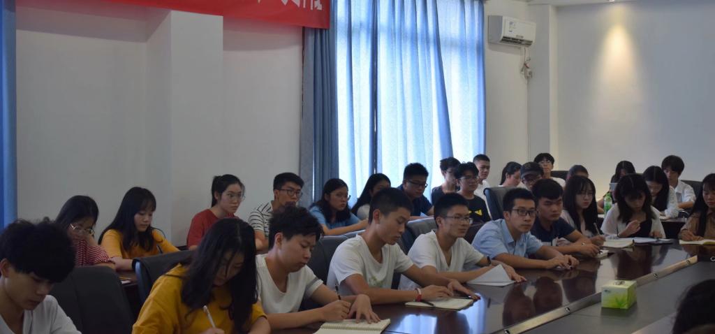 6月26日下午,我院在砺志楼一楼会议室举行学生干部培训会。我院副院长赖奇、学生科科长李宏、分团委书记刘甜甜、16级辅导员王华云、19级辅导员江冉出席了本次会议,我院全体学生干部参加了本次大会。