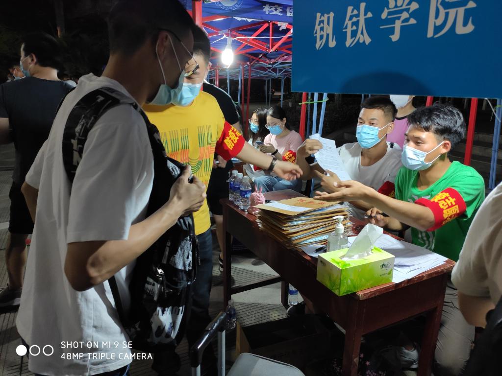 6月3日晚上,为打赢复学报到防疫战,切实保障学校开学工作有条不紊的进行,我院组织了一批由大四学生组成的志愿者团队,助力学生返校工作。钒钛学院党委书记院长邹敏、院长助理兼办公室主任安昀、学生科负责人李宏、分团委书记刘甜甜到现场安排部署、切实落实返校工作,各年级辅导员积极配合此次学生返校工作安排。