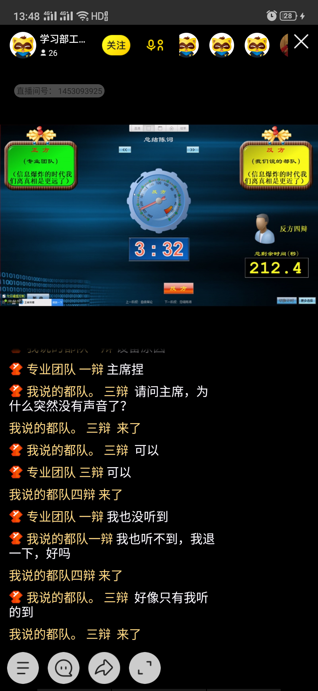 本次决赛正方团队名称是“专业团队”,反方团队名称是“我们说的都队”。在比赛中,参赛双方在介绍完各自的队员后,比赛正式开始。在唇枪舌剑中,参赛选手们你来我往,将辩论赛的气氛时时推向高潮。尤其在开篇立论中,一辩论据内容丰富,引用资料充分恰当、准确;攻辩阶段,二、三辩回答问题精准,处理问题有攻有守;攻辩小结中,辩手们全面归纳对方的矛盾差错,并做了系统的反驳和攻击,在辩护中也有理有据,说服力极强;自由辩论阶段,每个辩手都积极思考,力图找出对方言语中的漏洞,在攻防中把握论辩主动权。最后,比赛在双方参赛选手精彩的陈词总结中落下帷幕。