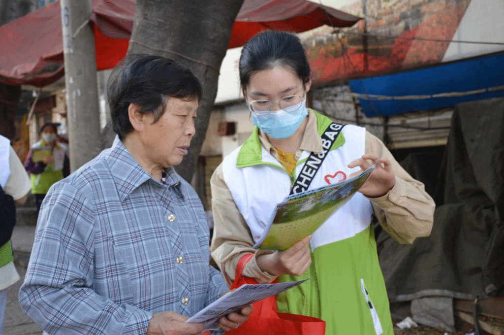 在活动现场,志愿者首先将载有垃圾分类小贴士和森林防火指南的宣传资料发放到在场居民手中。在居民阅读资料的同时,志愿者为他们提供垃圾的具体分类、分类标准和如何预防森林火灾等讲解服务,并为咨询的居民答疑解惑。志愿者在活动中为当地居民普及了垃圾分类知识、森林防火等安全知识。