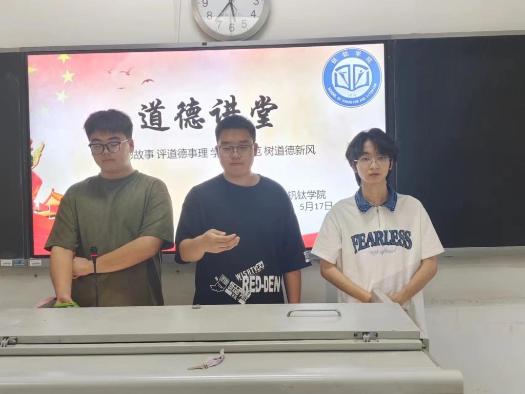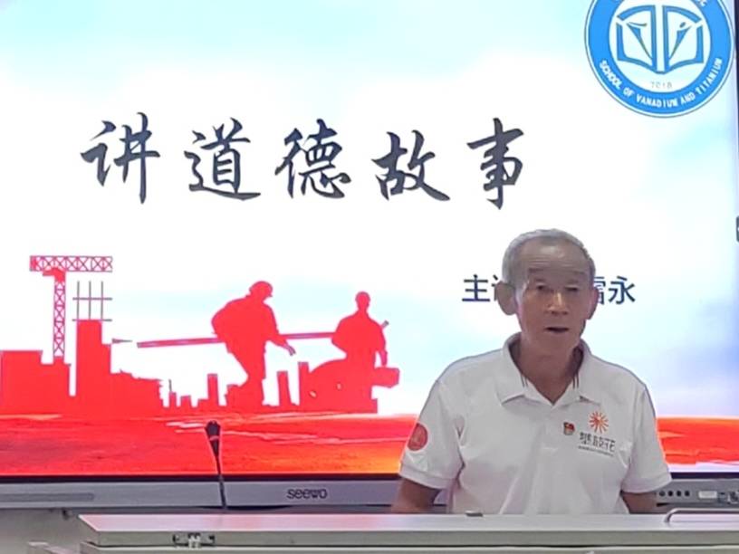 为深入学习贯彻习近平新时代中国特色社会主义思想和党的二十大精神,积极培育践行社会主义核心价值观,进一步弘扬中华优秀传统文化,2023年5月17日,钒钛学院在1-201开展了“道德讲堂”活动,钒钛学院学生科负责人朱艳芳、分团委书记卢进出席本次活动,本次讲座由全国劳动模范、全国五一劳动奖章获得者雷永老师主讲。