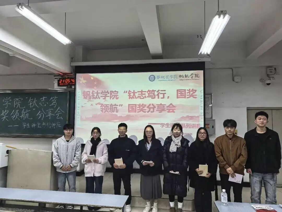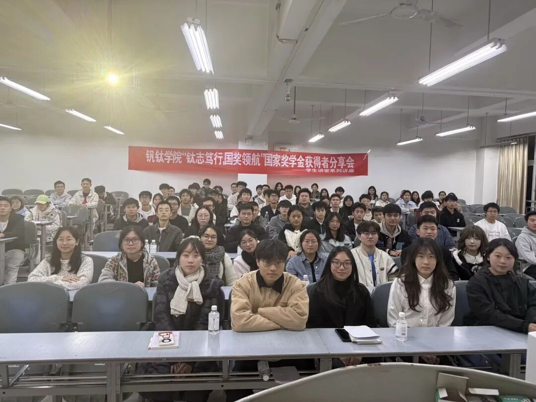 为发挥国奖学子榜样力量,分享学业提升、竞赛备赛与实践成长经验,助力大家明确发展方向。钒钛学院于12月1日在尚学楼401教室举行国家奖学金,国家励志奖学金获得者分享大会。本次活动是学院“学生讲堂系列讲座”的重要组成部分,由学院学术创新部协办,辅导员代表王婷老师和7位国家奖学金、国家励志奖学金获得者及150名各年级学生代表共同参与。
