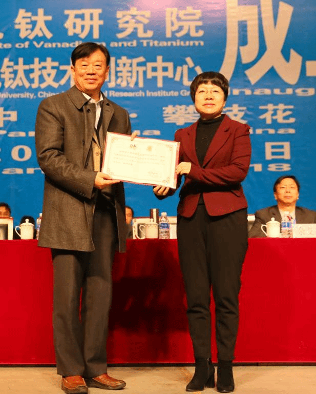 市人民政府副市长马晓凤代表市委、市政府为攀枝花国际钒钛学院、攀枝花国际钒钛研究院学术委员会主任干勇颁发聘书