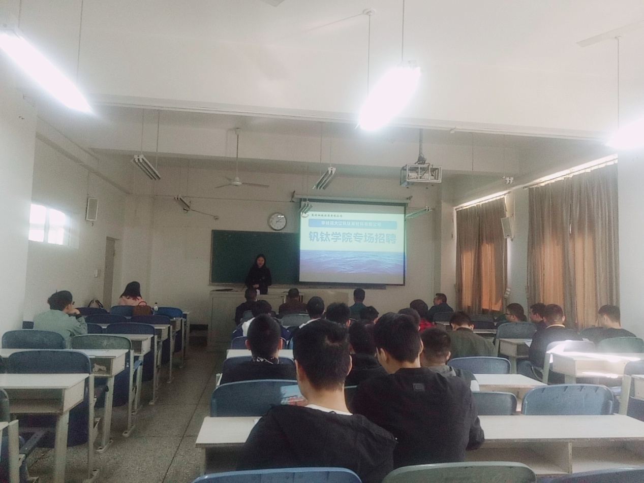 攀枝花大江钒钛新材料攀枝花学院专场招聘会于2018年11月28日在二教204顺利举行。钒钛学院副院长赖奇、学生科科长李宏、毕业班辅导员沙彩云出席本次招聘会,钒钛学院、智能制造学院部分学生参加了本次招聘会。