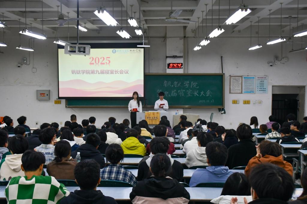 11月27日晚上,钒钛学院第九届寝室长大会在尚学楼316教室圆满举行。学生科科长李宏、分团委书记鲍丽莹、各年级辅导员,以及全体寝室长参加了本次会议,共商寝室管理与文化建设事宜。