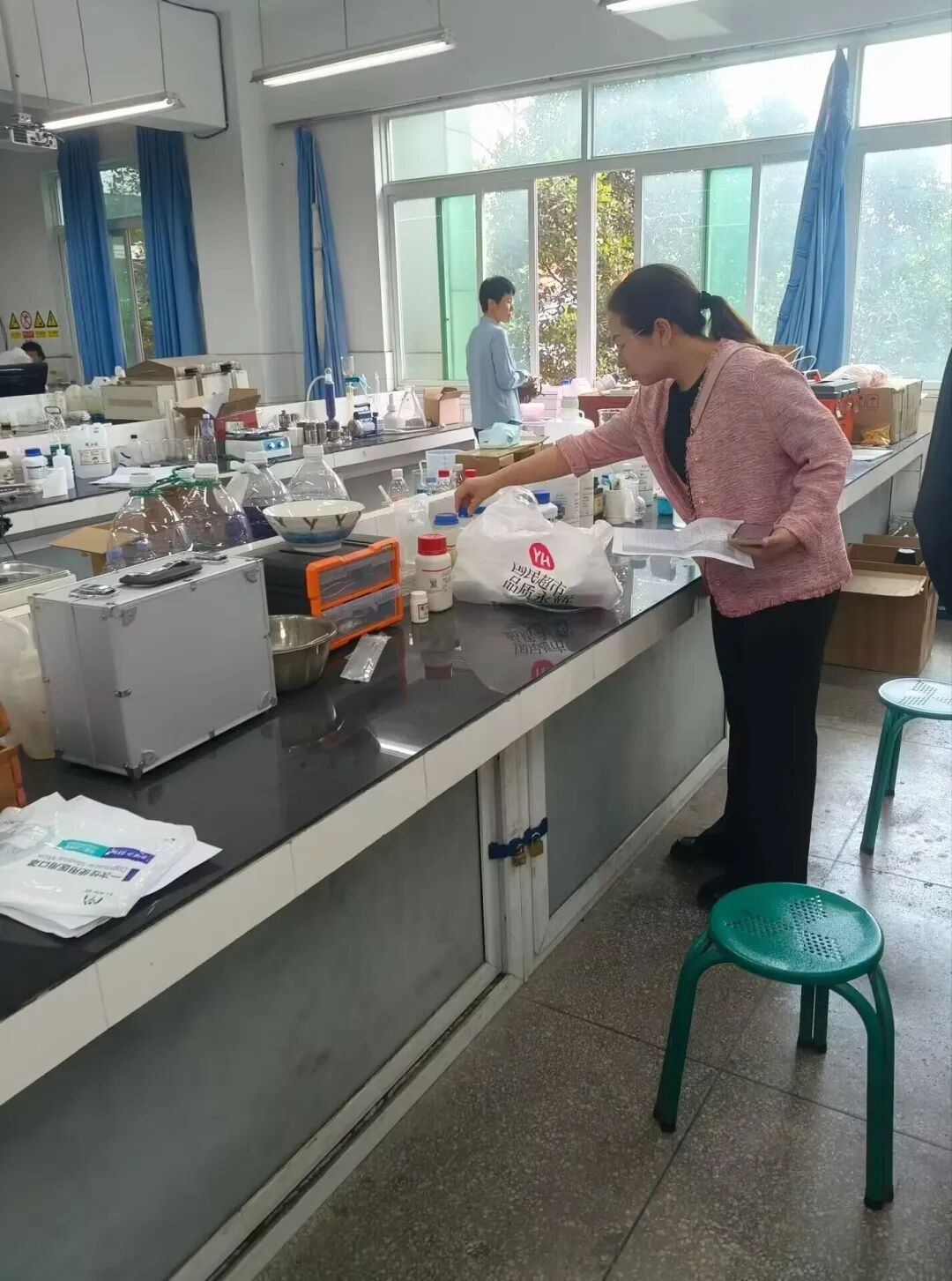 检查过程中,副院长张皓带队,对C教各个实验室进行逐一细致排查。重点核查危险化学试剂的分类储存、规范摆放、领用登记、密封保管情况,仔细检查试剂标签是否清晰、消防设施是否完好、电路与通风设备运行是否正常,全面排查是否存在违规存放危险化学品、实验器材杂乱、安全防护不到位等问题,对实验室日常安全管理细节进行严格督导。