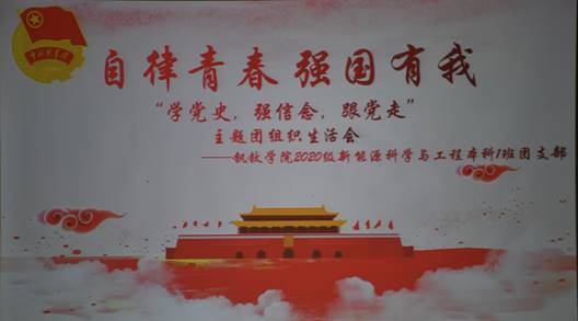 11月12日下午,我院于二教101开展新能源科学与工程1班学党史强信念班会。本次班会由寿宏宇担任主持人,校团委书记助理唐伟伟、学生科科长李宏、20级辅导员孙宁出席,20级新能源科学与工程1班全体学生参加。