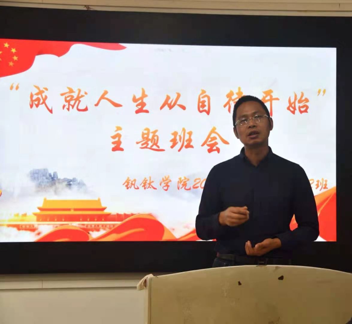3月22日上午,我院19级材料科学2班于二教110举行“成就人生从自律开始”主题班会。院党委书记邹敏、院长助理兼办公室主任安昀、学生处王颖、张远、陈红,学生科科长李宏、辅导员秦凤梅、18级辅导员王新宇、孙尚以及材料科学二班全体同学参加。