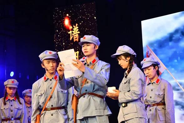 短暂的休息之后,爵士舞蹈《AYA》以热辣的舞姿、炫动的节奏展现出年轻的跃动与张扬,将全场的氛围推向又一个高潮;而后的弹唱《想见你》使大家沉浸其中,体会那“穿越人海,穿越无数时空,我还是想见你,我少年时代的你们”的百般滋味;由20级学生带来的情景剧《丰碑》以红军长征途中一个片段为切入点,演绎了无坚不摧的长征精神和顽强的革命意志,致敬了无数为革命献身的英雄,感动了全场观众,唤起了大家的爱国热忱和奉献意识。