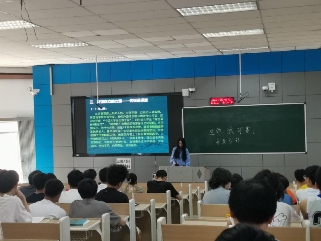 讲座分五部分,第一部分向同学们讲述了生命的起源:包括生命的构成因素(生命的自然属性、生命的社会属性、生命的精神属性)、生命的特殊意义:欣赏生命,做我真好。第二部分通过古今名人传记向同学们讲述了古往今来,生命,需要敬畏和尊重,要看破挫折,要逆风而行。通过同学们身边不珍爱生命带给我们的惨痛教训的例子,如:酗酒过度伤身、因恋爱导致轻身、寝室矛盾犯罪,引发学生对生命的思考。第三部分,自强自立的力量——优标进课堂,邀请学校自强达人外国语学院英语专业肖智慧、患上了幼年类风湿关节炎依旧热爱生活的陈可心两名同学给大家分享他们热爱生活珍爱生命,阳光向上成长的心路历程。第四部分,调动课堂气氛,让同学们自由讨论对生命的认知和理解,邀请了部分同学发言分享。第五部分,针对当下同学们身边发生的事故,比如遇到人生伤害、财务及学业损失、火灾、道路交通等问题,向同学们提供了获得帮助的渠道,教导他们该怎么正确应对处理。再次为同学们提供了学院书记、副书记、学生科所有老师的联系方式,学院老师们将为全院学生提供安全后勤保障,24小时竭诚为学生服务。第六部分,总结了生命的真谛:爱即是生命。