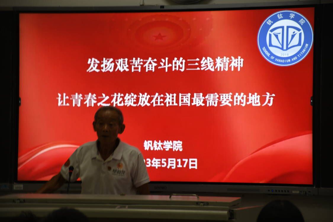 艰苦奋斗精神是中华民族的优良传统,也是中国共产党人的本色和优良传统,更是实现中国梦和个人理想的重要保证。2023年5月17日,钒钛学院开展了“发扬艰苦奋斗的三线精神”主题教育,此次活动邀请了“全国劳模”、全国五一奖章获得者、攀枝花市西区“五老志愿者”雷永同志到校开展讲座。
