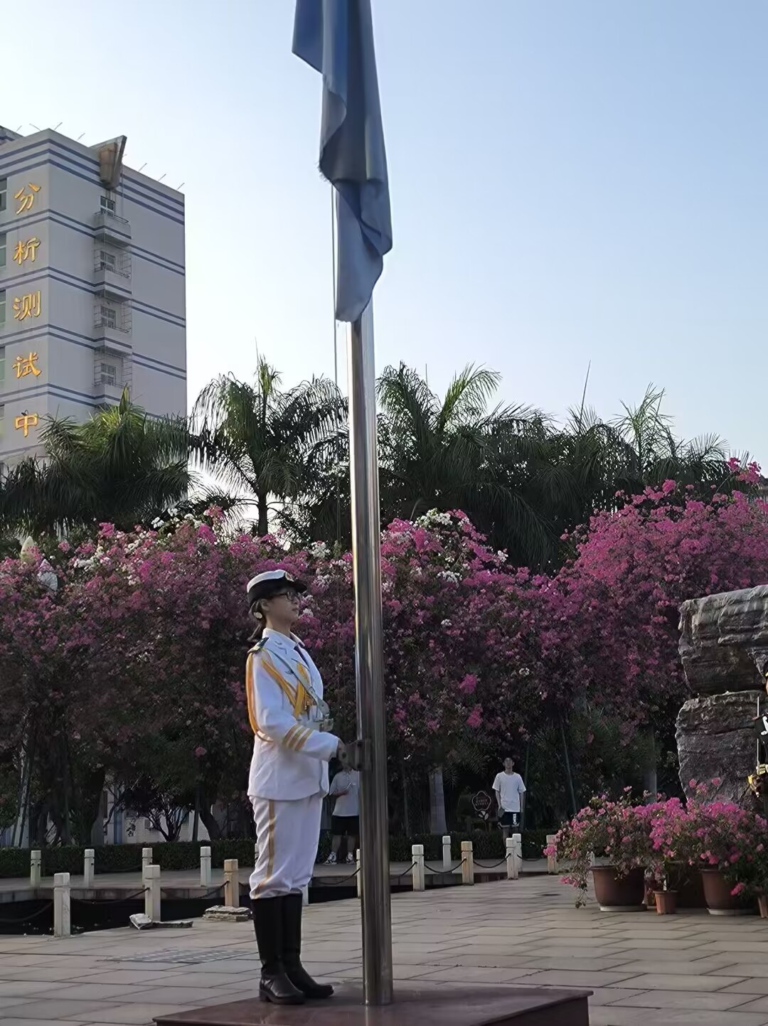 最后主持人宣布升旗仪式结束,全体师生有序退场。