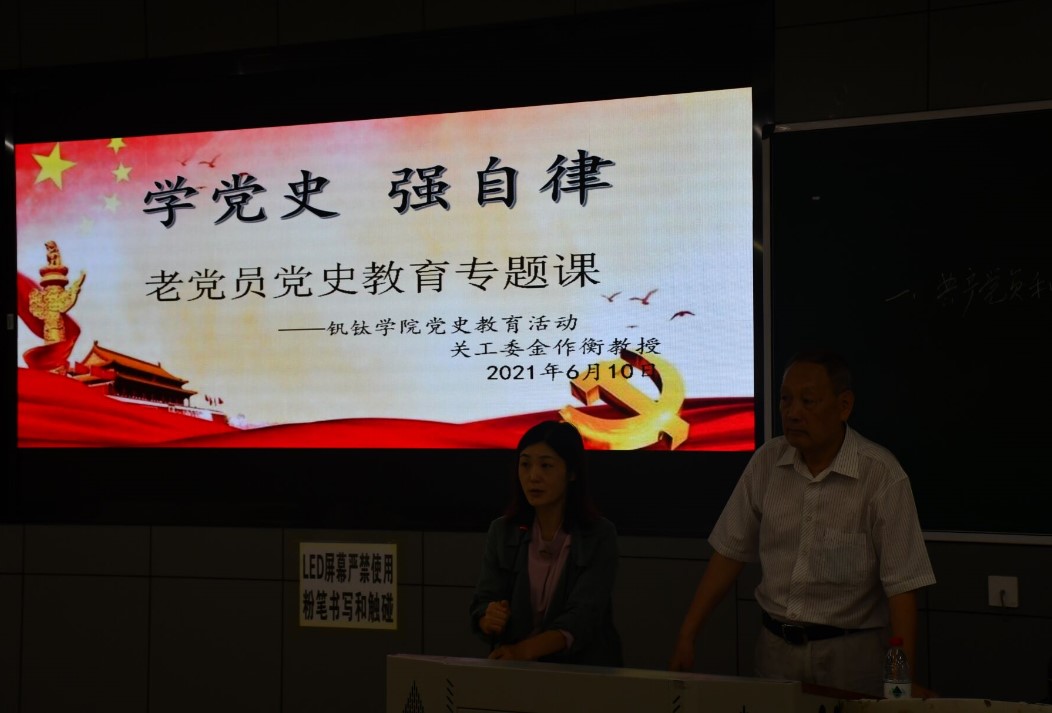 6月10日上午,我院于二教2-2举行党史学习教育。关工委金作衡教授作题为“学党史,强自律”老党员党史教育专题课,各党支部书记、学生党员及部分积极分子同学参加。