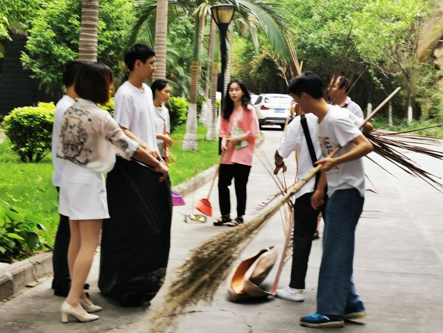 钒钛学院全体党员于6月30日下午16:30至18:00进行了为时1小时30分的党员志愿服务活动,打扫学院公共区域,美化校园环境。