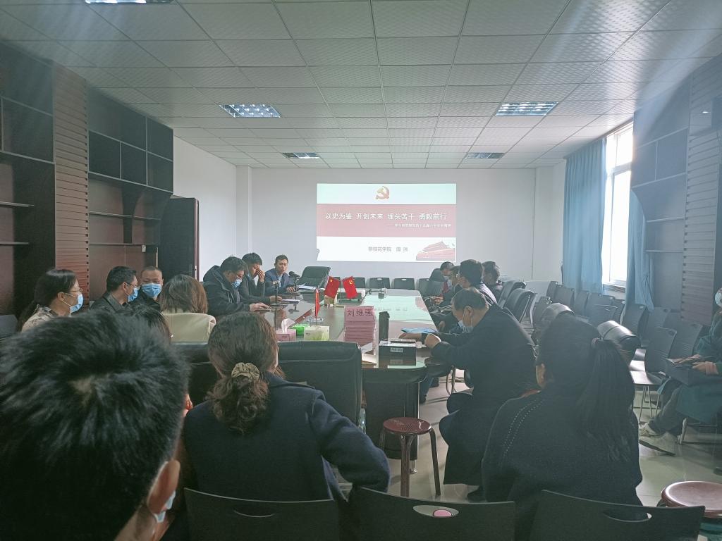 2022年2月23日下午四点,钒钛学院全体教工党员于励志楼303开展了“以史为鉴、开创未来,埋头苦干、勇毅前行 --学习和贯彻党的十九届六中全会精神”党课活动,主讲人:钒钛学院党委副书记蒲洪。