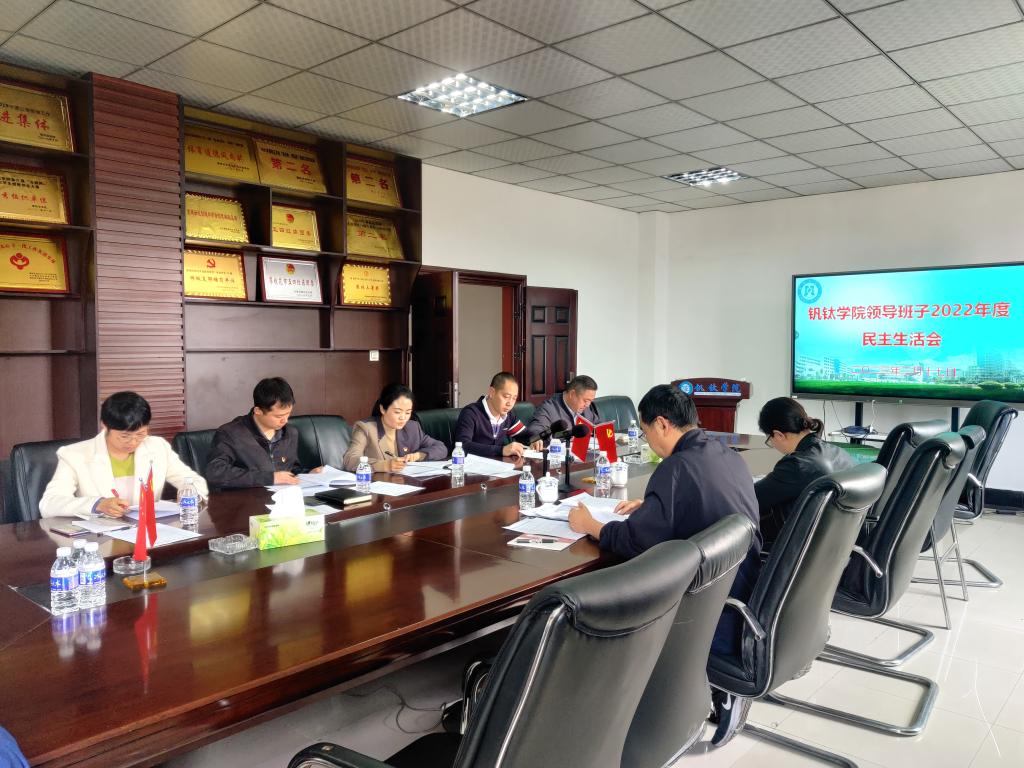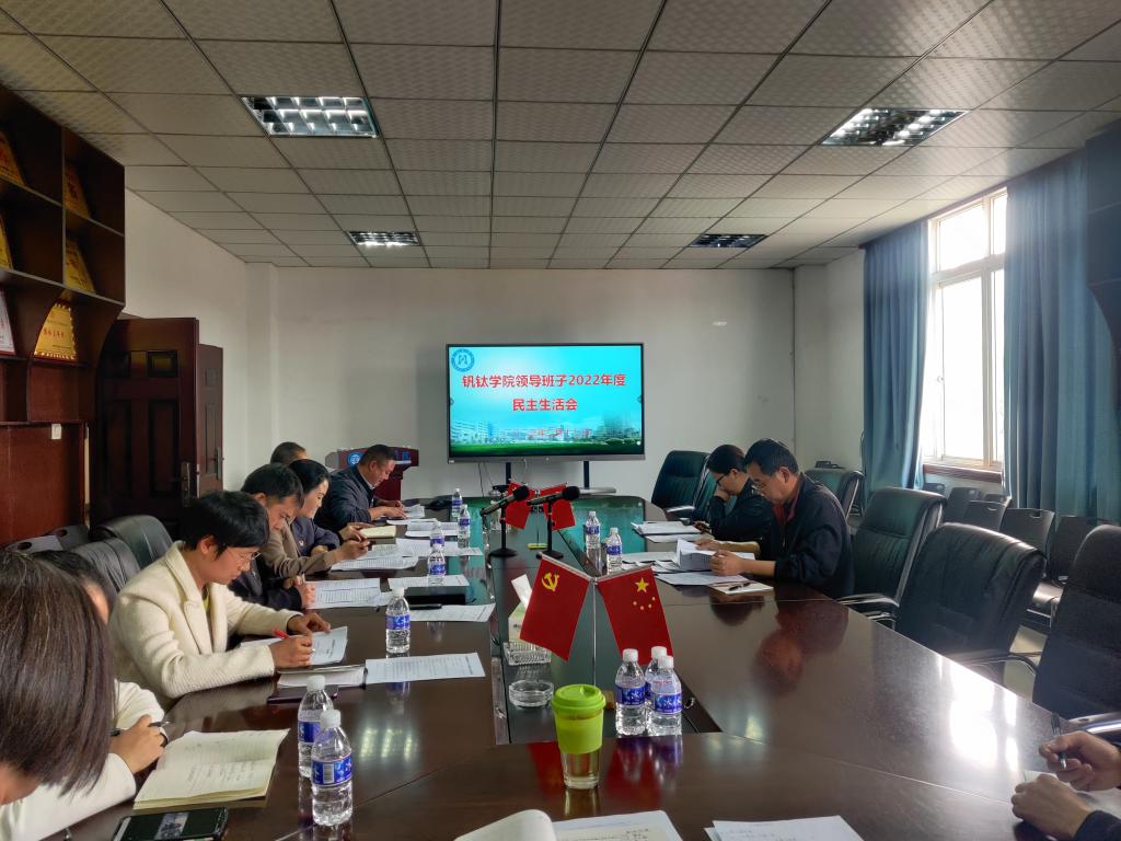 按照中央、省委部署和学校统一安排,2月17日下午,钒钛学院在砺志楼303室召开2022年度党委领导班子民主生活会。会议紧扣“全面贯彻习近平新时代中国特色社会主义思想,深刻领悟“两个确立”的决定性意义,增强“四个意识”、坚定“四个自信”、做到“两个维护”,团结带领党员干部群众以奋发有为的精神贯彻落实党的二十大作出的重大决策部署,在全面建设社会主义现代化国家新征程上奋力谱写攀枝花发展新篇章”的主题,经过前期广泛征求意见和组织筹备工作,班子成员聚焦七个方面做深刻对照检查,针对存在的问题深入查摆原因,开展批评和自我批评,并明确今后的努力方向和整改措施。