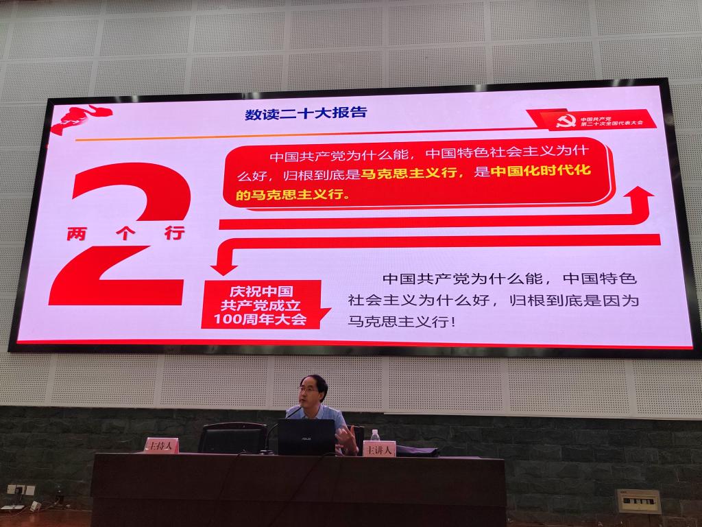 首先,钒钛学院联合艺术学院邀请了马克思主义学院党委书记张清学教授作题为“思想伟力领航向擎画复兴蓝图——习近平新时代中国特色社会主义思想数字式解读”的专题宣讲。张清学同志以数字视角,高度凝练,通俗易懂的方式解读习近平新时代中国特色社会主义思想的主要内容,通过专家的辅导学习,同志们对“十个明确”、“十四个坚持”、“十三个方面的成就”有了更深的理解。