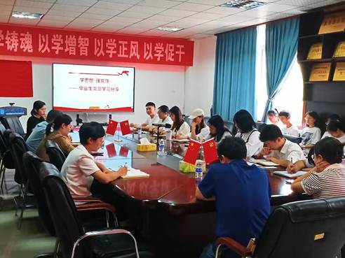 会议第二项由毕业生党员代表张川兰、郑成松、刘德芳等5位同志围绕“学思想、强党性”分享了学习贯彻习近平新时代中国特色社会主义思想主题教育阶段的心得体会,表示要自觉用习近平新时代中国特色社会主义思想改造主观世界,坚定理想信念、提升思想境界、加强党性锻炼,始终保持共产党人的政治本色。
