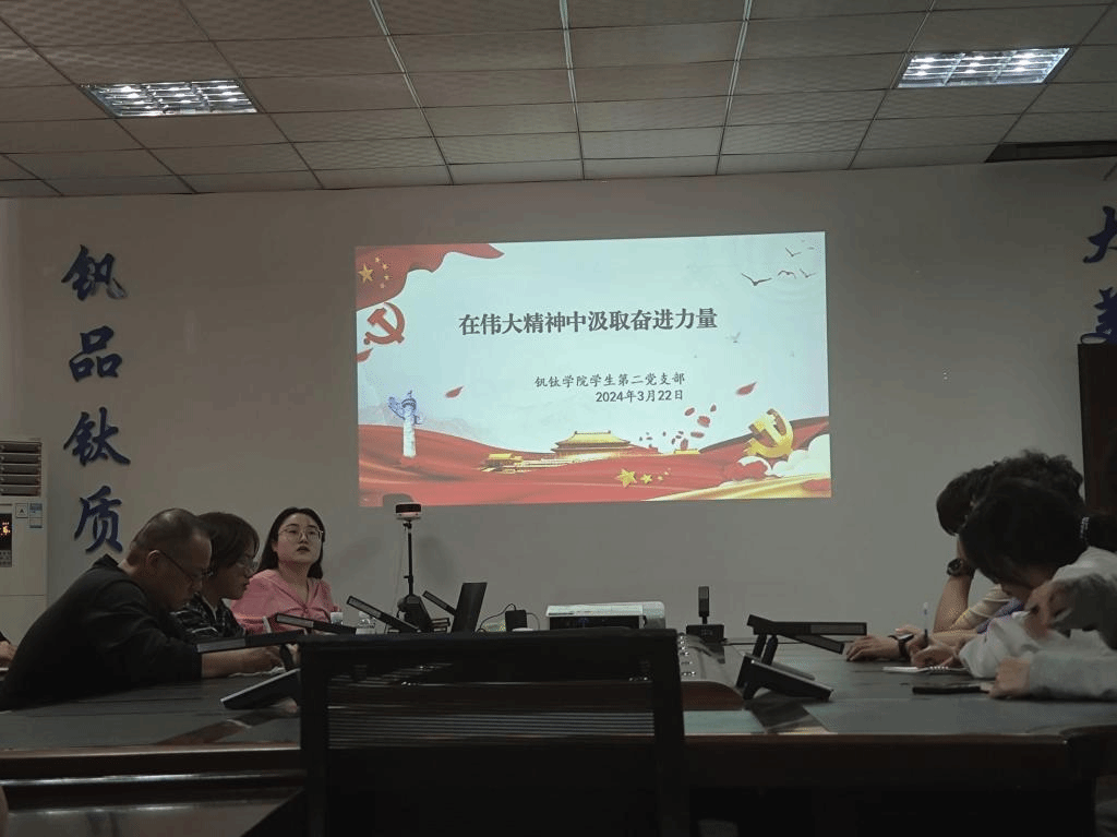 2024年3月22日为深入学习习近平新时代中国特色社会主义思想,钒钛学院学生第二党支部在砺志楼5楼514开展了“在伟大精神中汲取奋进力量”党课,主讲人为党支部书记沙彩云。