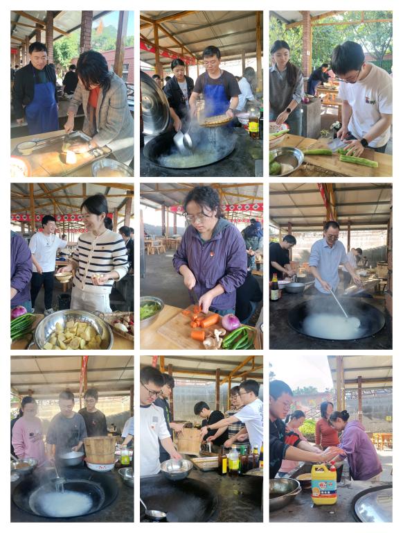体验活动结束后,全体党员共同参与“共做创业饭”环节。大家在工地旁、山坡上,仿照当年建设者的方式,生火做饭。虽然条件简陋,但大家分工协作,洗菜、切菜、烧火、炒菜,忙而不乱。一顿简单的“创业饭”,不仅是对历史的致敬,更是对团队协作精神的生动实践。