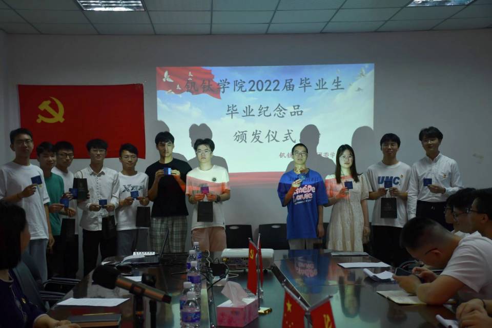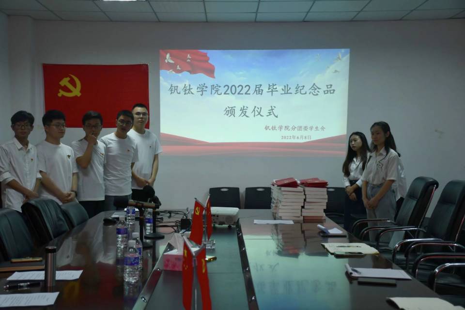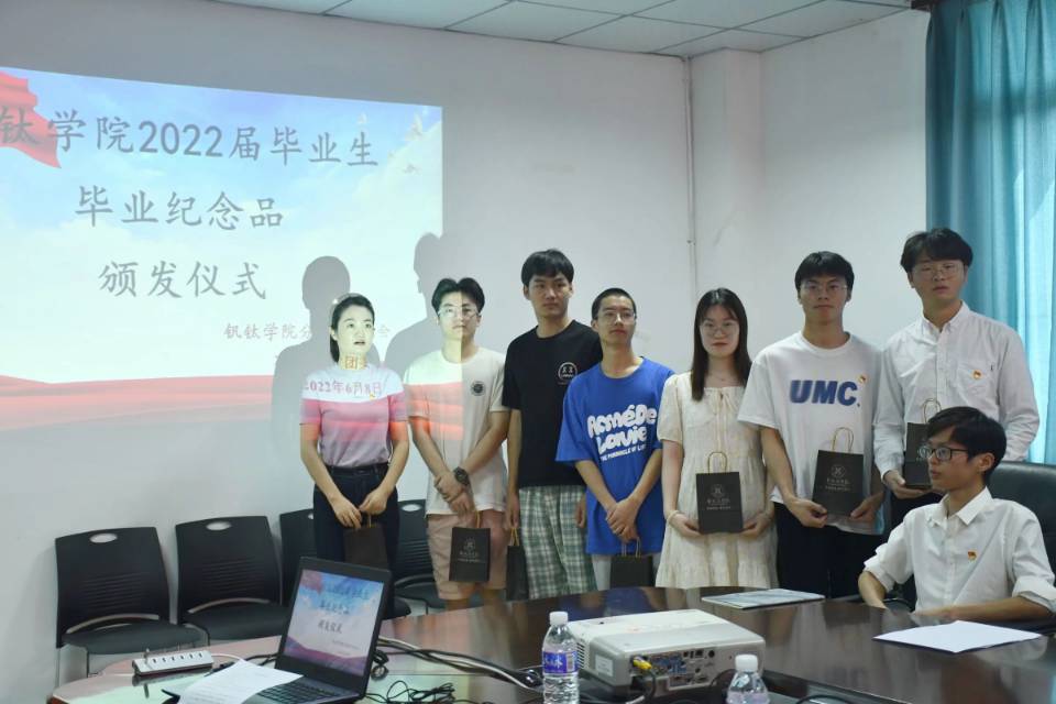 2022年6月8日,本院于砺志楼305举行钒钛学院2018级毕业纪念品颁发仪式。党委书记王鹃、副院长蒋燕出席,2022届部分毕业生参加。
