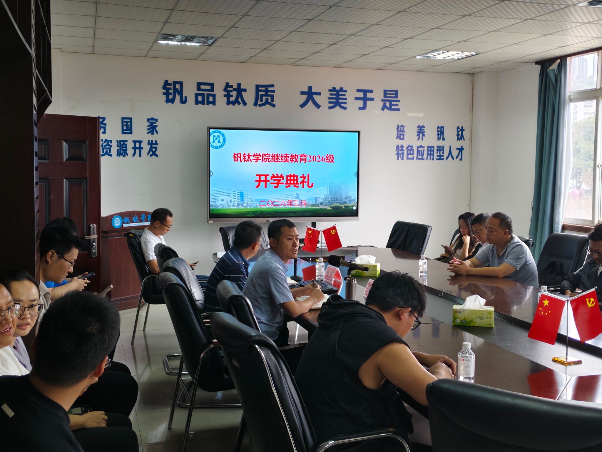 为帮助成人教育新生快速融入校园学习生活,明晰学业目标,开启深造新征程,3月29日上午8点50分,钒钛学院成人教育新生入学仪式在砺志楼303会议室隆重举行。钒钛学院党委副书记、纪委书记蒲洪、教师代表杨成及全体成教新生齐聚一堂,共赴这场充满希望的求学之约,这场仪式为新生们明晰求学方向、开启学业新篇章奠定了坚实基础。