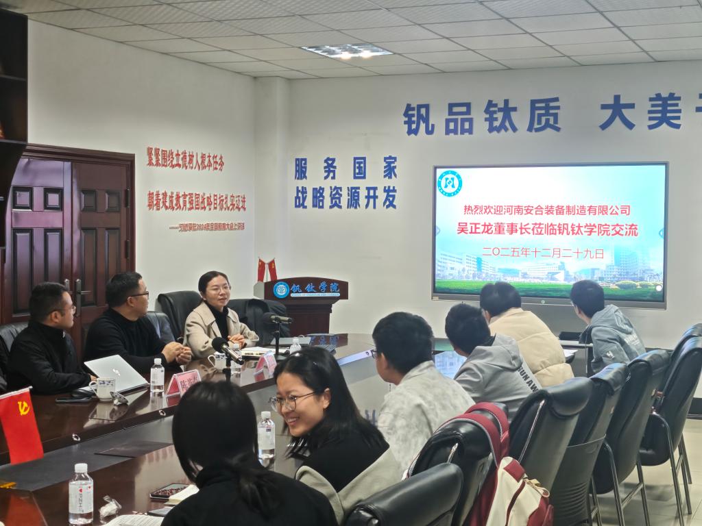 2025年12月29日,钒钛学院在砺志楼303会议室举办学术讲座,讲座特邀河南安合装备制造有限公司董事长吴正龙主讲,主题为“从东华重工液压支架高端化转型看国产装备高端化之路”,旨在引导学生关注国家高端装备制造发展战略,深化对产业升级与技术创新的理解。会议由副院长张皓主持,钒钛学院全体研究生参加。
